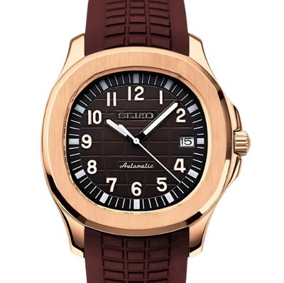 Aqua Marron & Or Rose – Montre Automatique Personnalisée