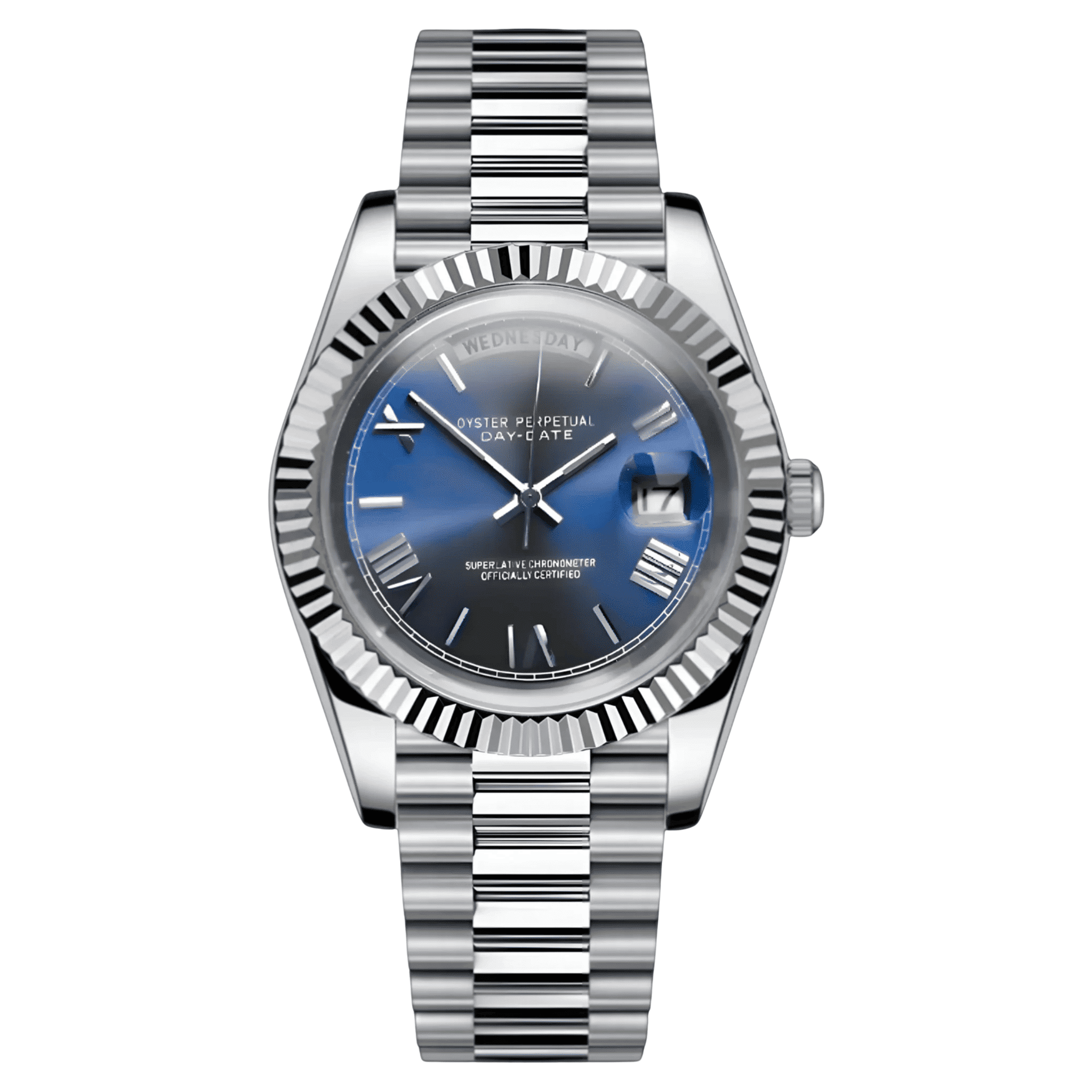 Modèles automatiques classe-luxe, complications jour/date et montage français soigné.