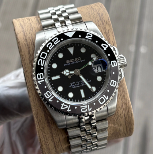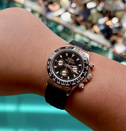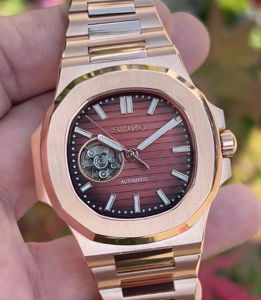 La SEIKMOD DAYTONA MARRON OR ROSE OYSTERFLEX est une montre chronographe, assemblée à la main en France, alliant précision et élégance.